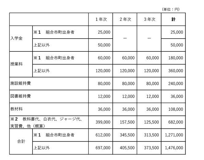 3年間の学費等必要経費「2026年(令和8年)度入学、37期生対象」