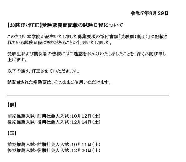 願書提出時には切手の添付にご注意ください。料金不足の場合には願書受付に支障をきたします。