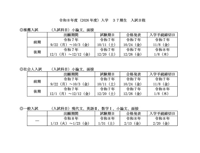 ※タイムスケジュール等詳細につきましては「学生募集要項」をご参照ください。